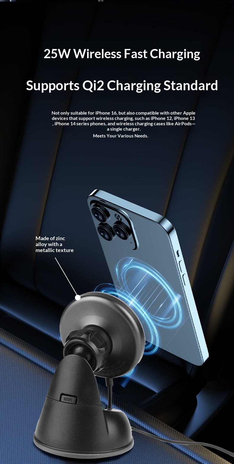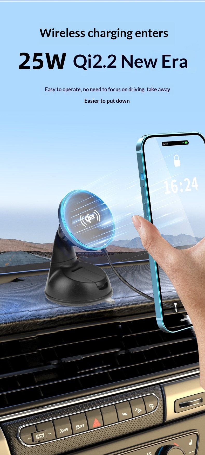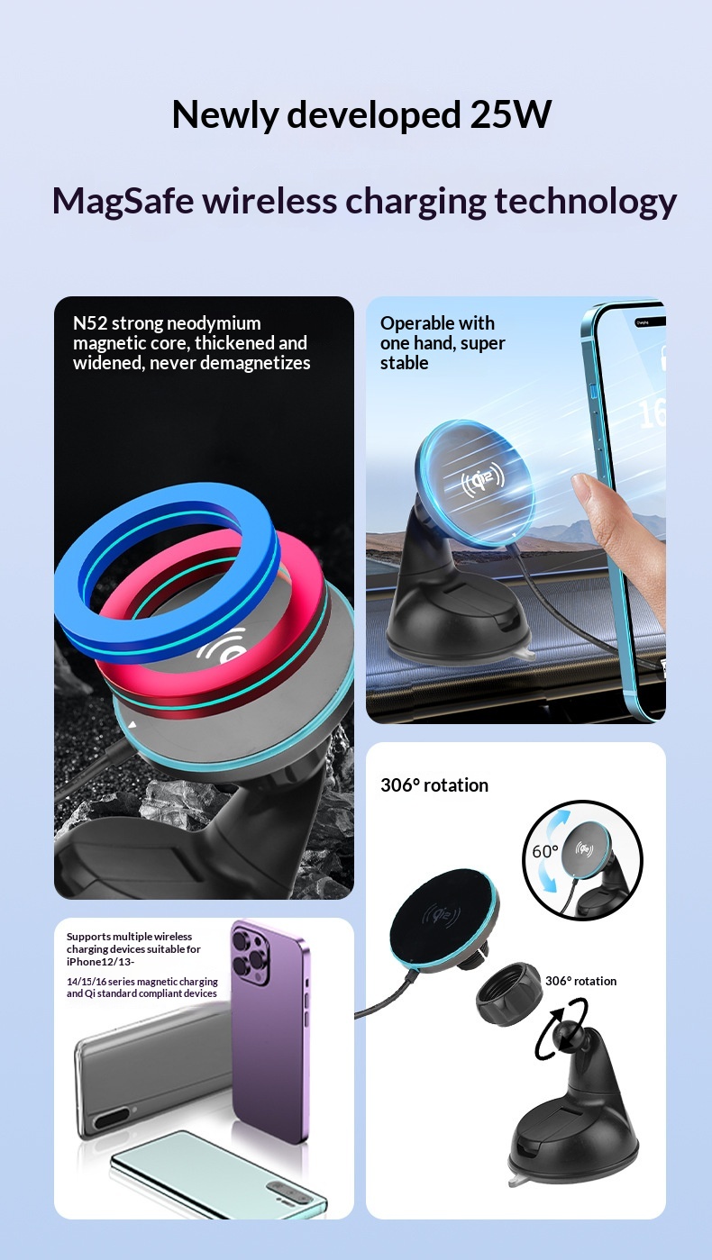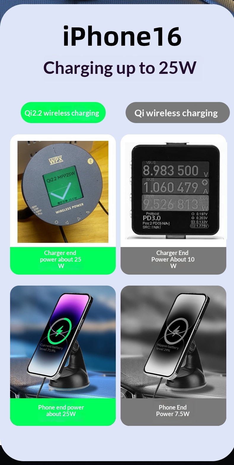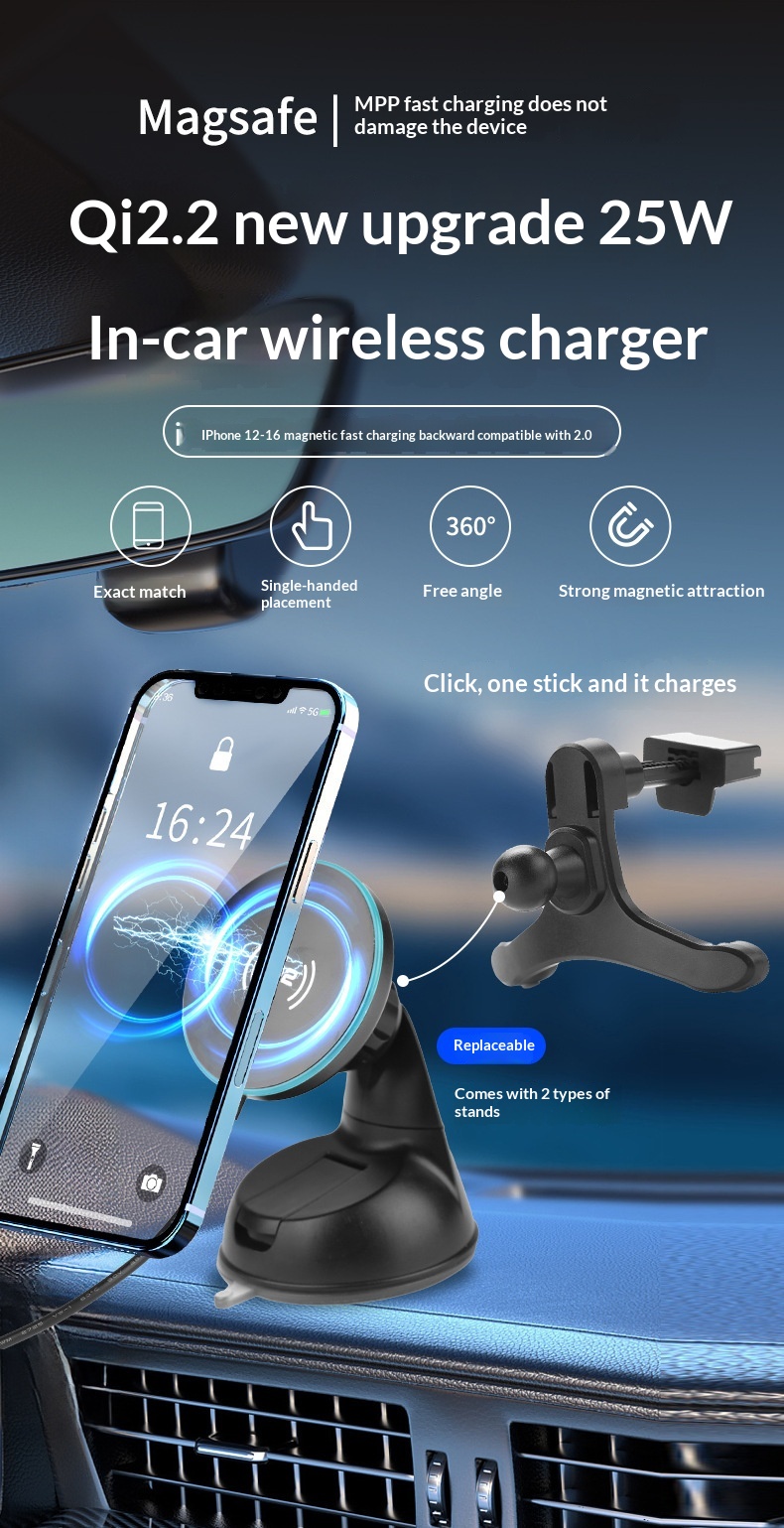 Color: Newly upgraded Qi 2.2 true 25W wireless fast charging / air vent + suction cup holder with a Type-C cable; Qi 2.2 wireless charging at 25W + includes a 58.5W car charger.