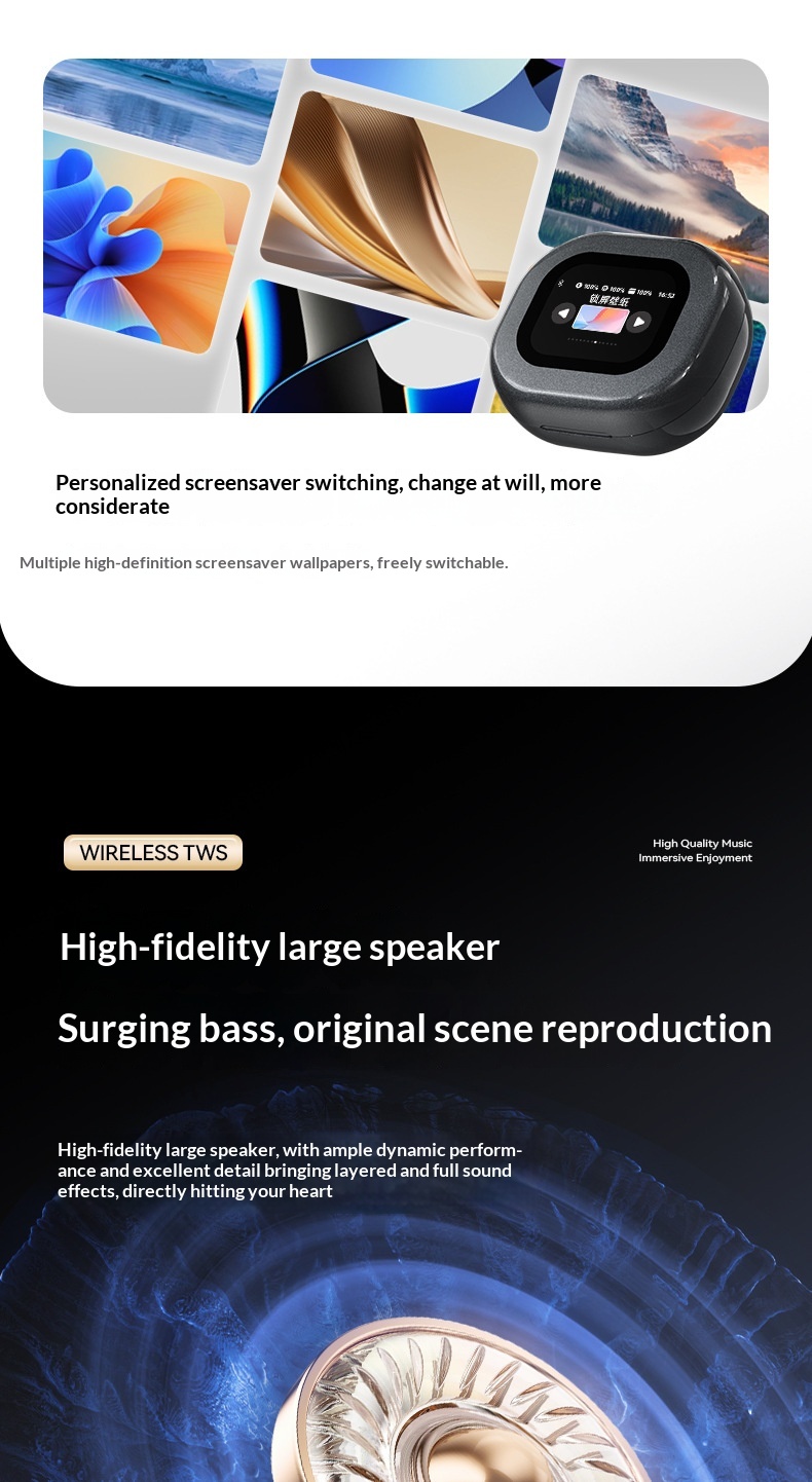 360° panoramic sound, ultra-long battery life, LED battery level display
