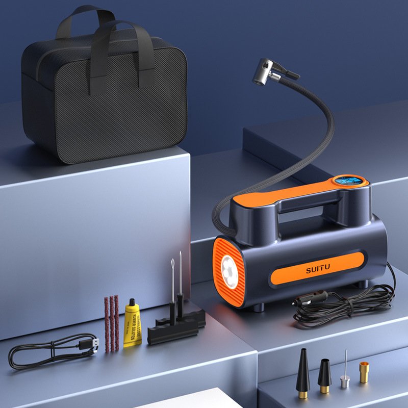 1 * Portable Air Pump (Wired) 4 * inflatable nozzle 1 * cigarette lighter fuse With English Manual