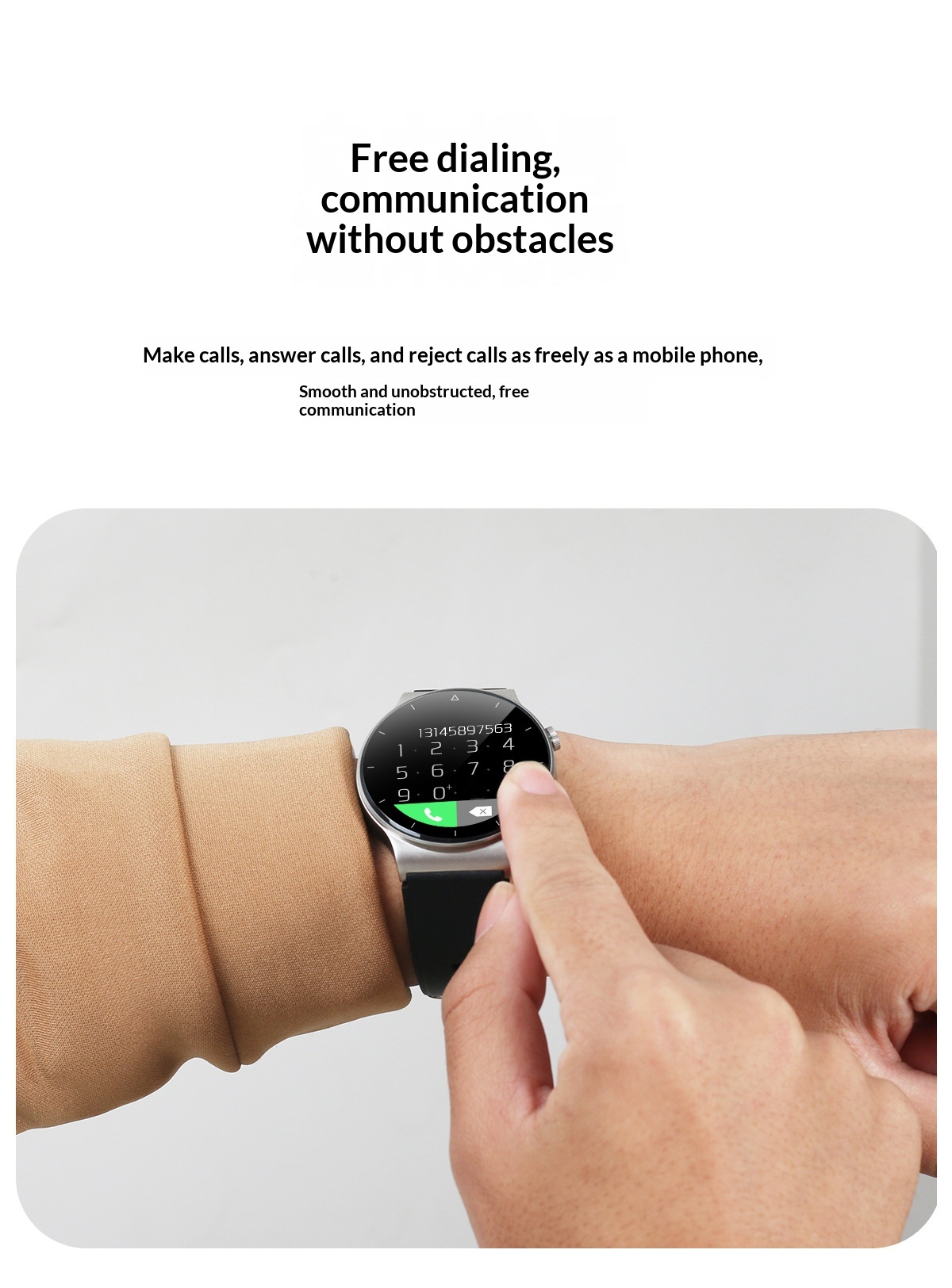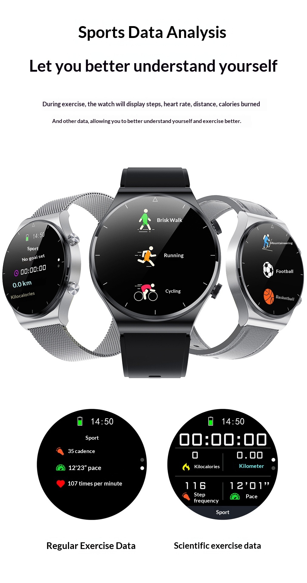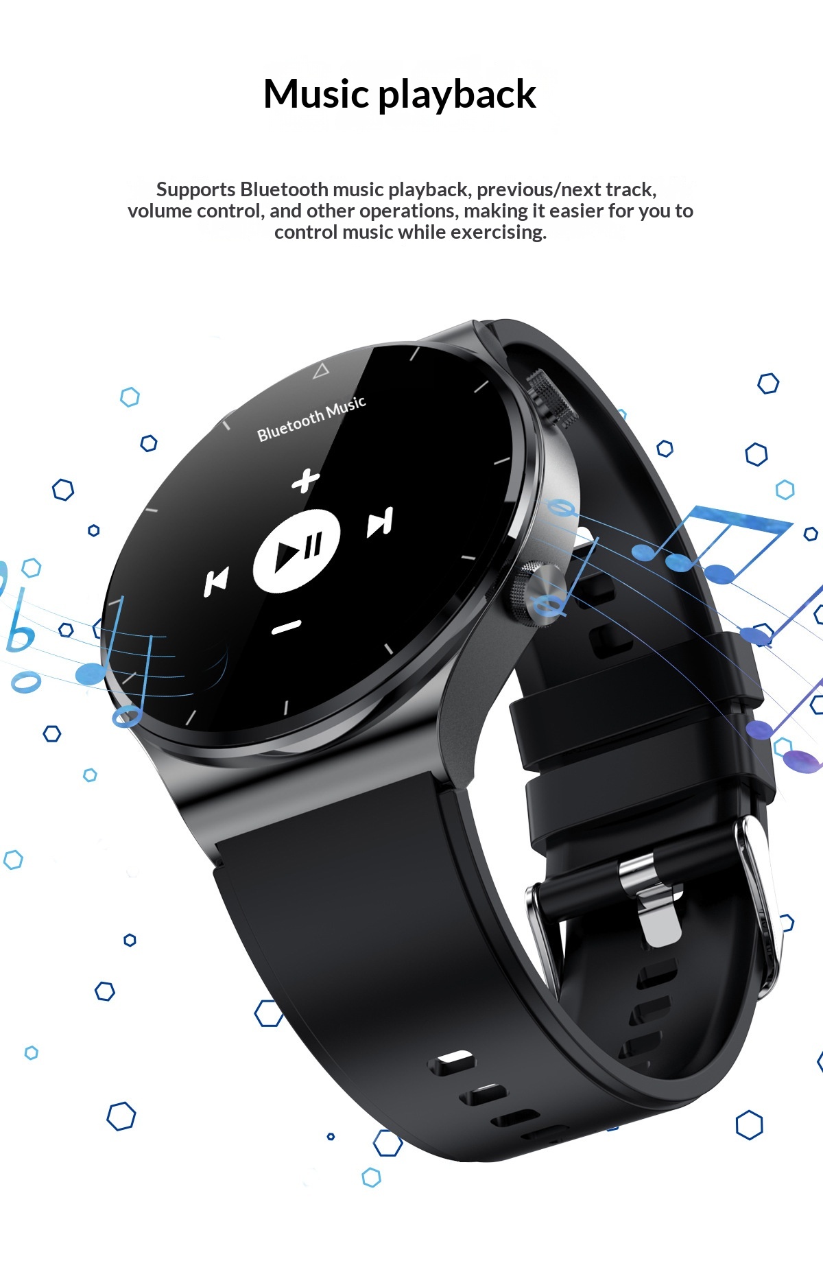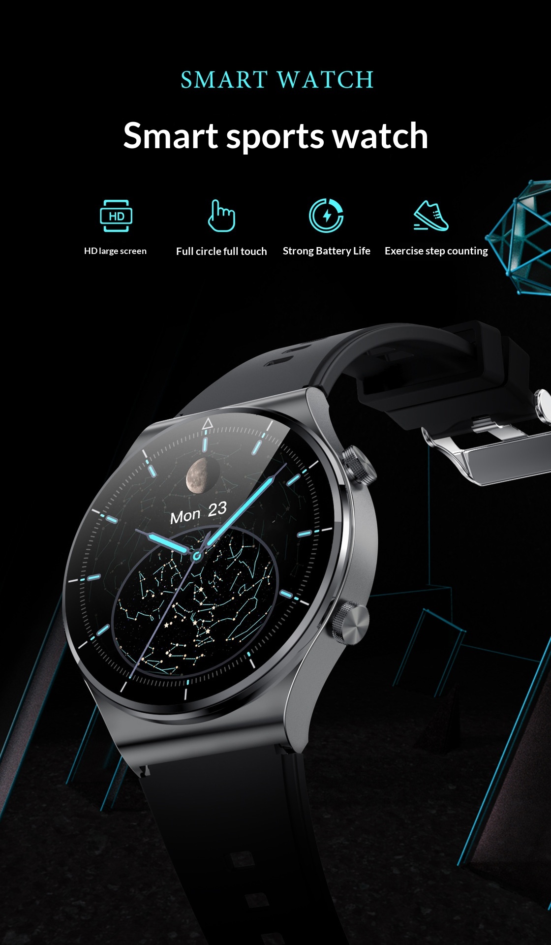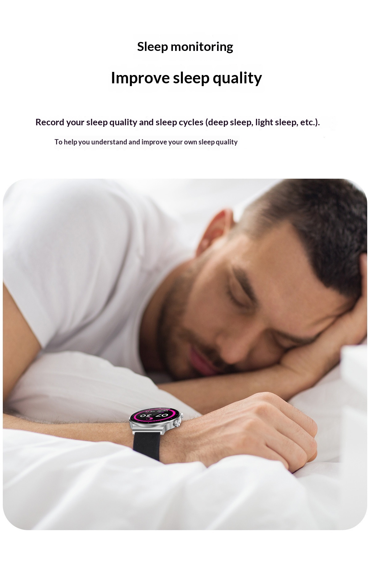 Features: step counting, heart rate monitoring, Bluetooth calls, smart notifications, and sleep tracking