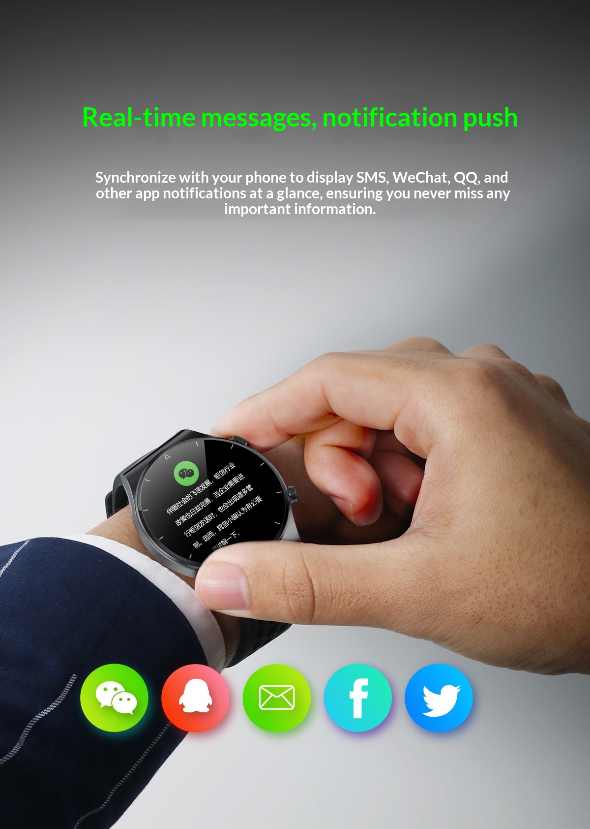 Packaging contents: watch, strap, packaging box, charging cable, instruction manual