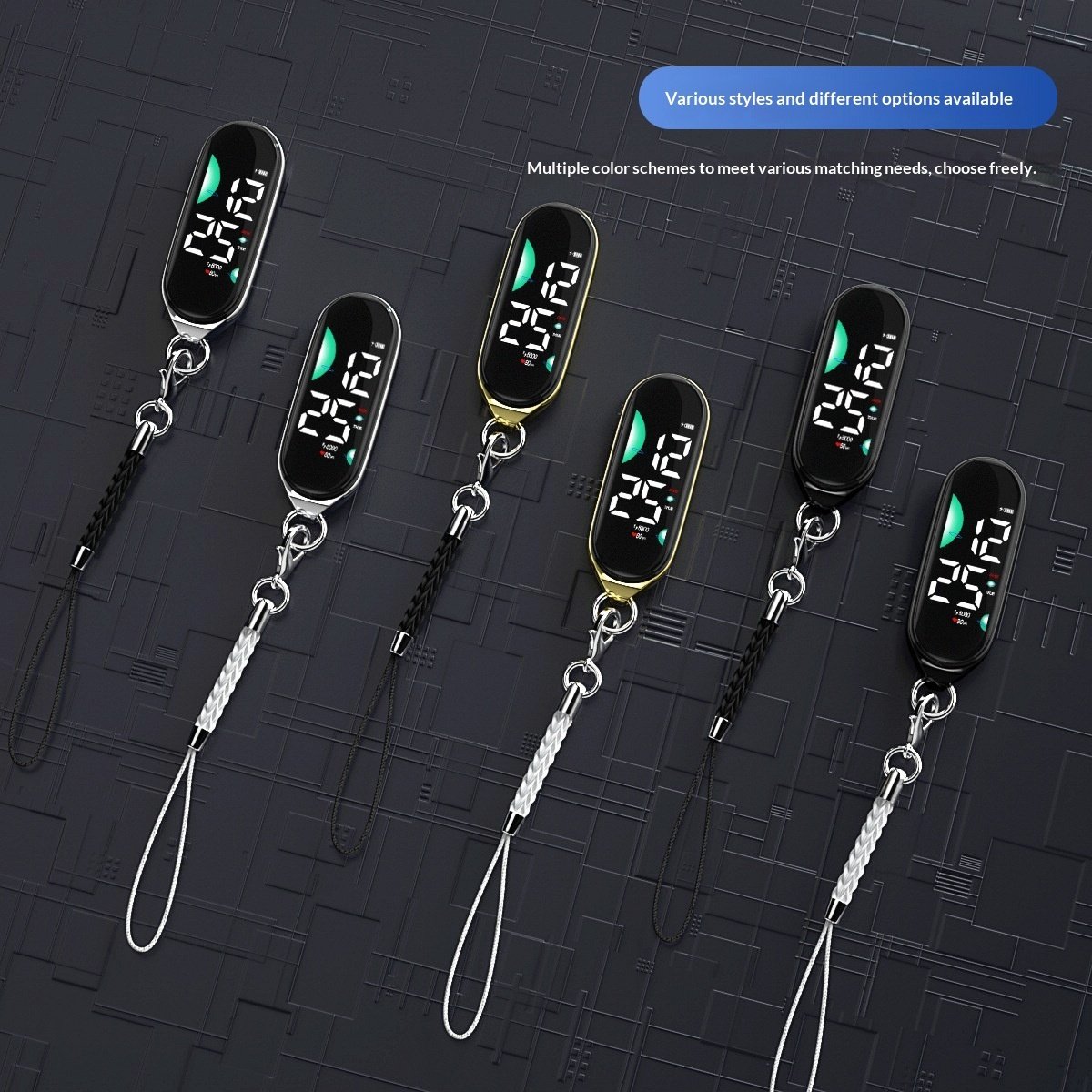 Colors: Black with black case, black with silver case, black with gold case, white with black case, white with silver case, white with gold case