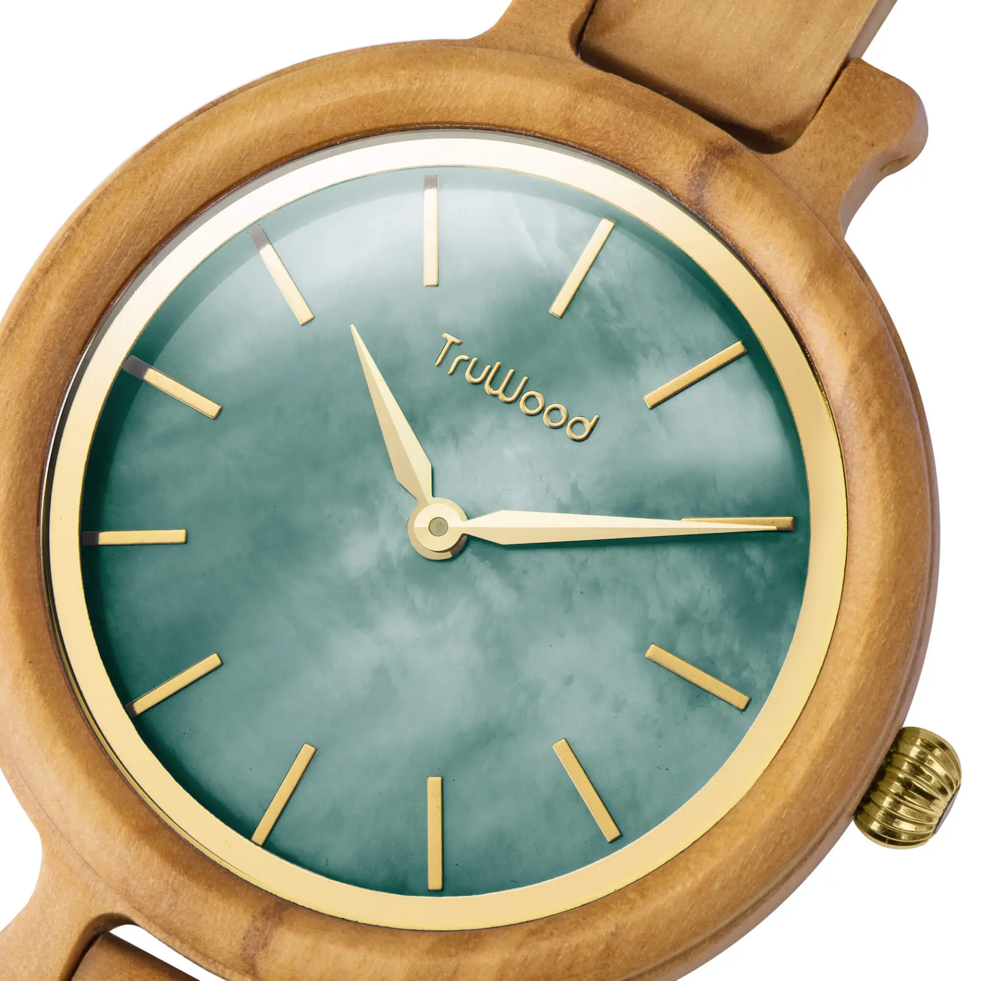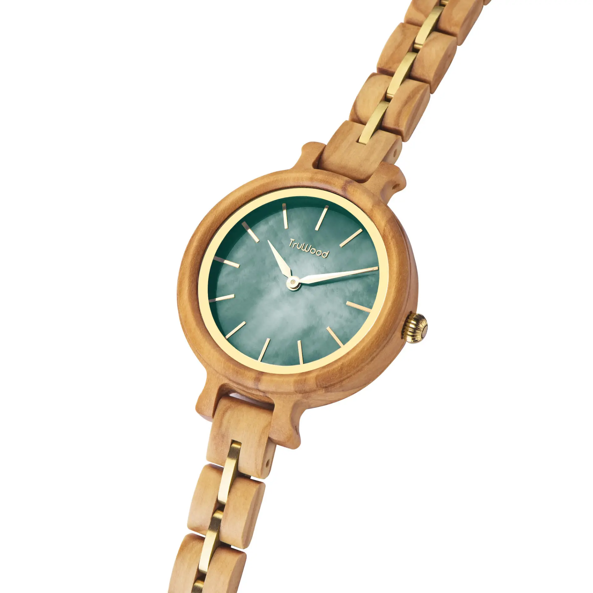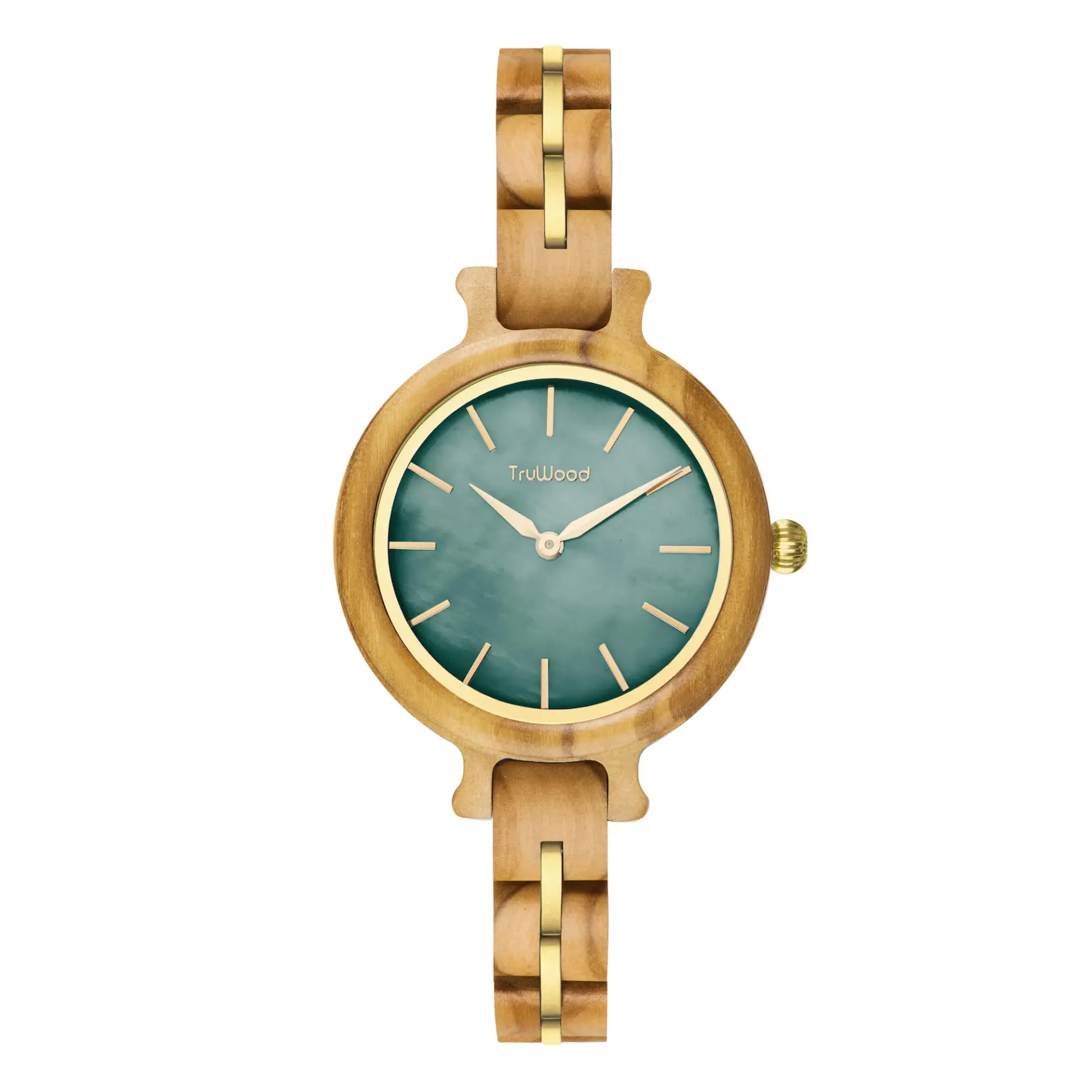 Belle is French for beautiful”, which this collection is rightfully named after. Some watches are meant to be practical, used everyday, nothing stylish. This is where we beg to differ! Practical and trendy do not have to be mutually exclusive, and the TruWoodJade is proof. This trendy watch is made with a perfect combination of brown olive wood and agreenpearl dial withgoldmarkings, giving it an unmistakable look that is the perfect marriage of luxury and practicality. Truly a dream watch for any fashionista.