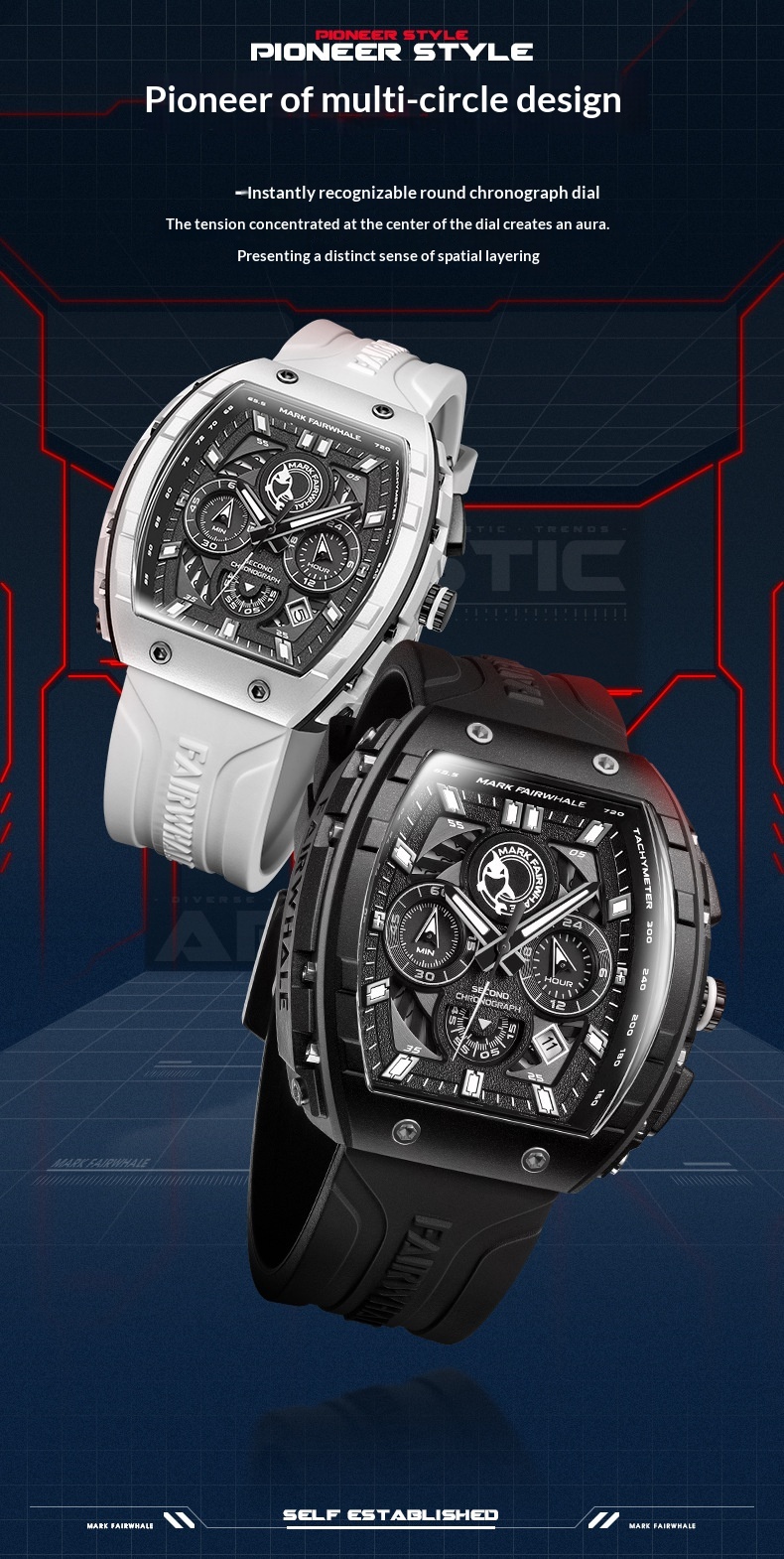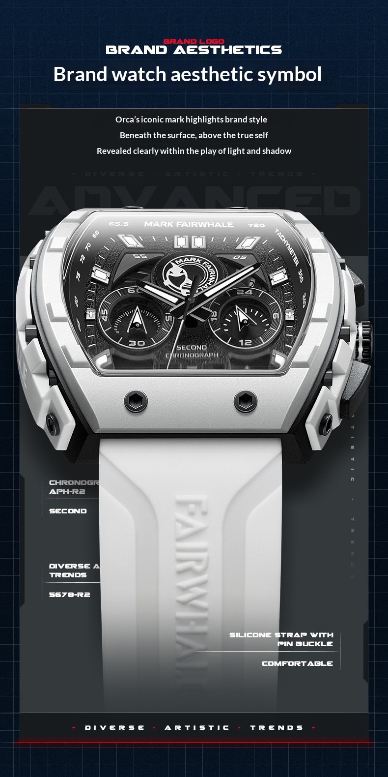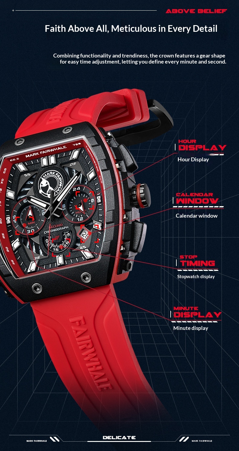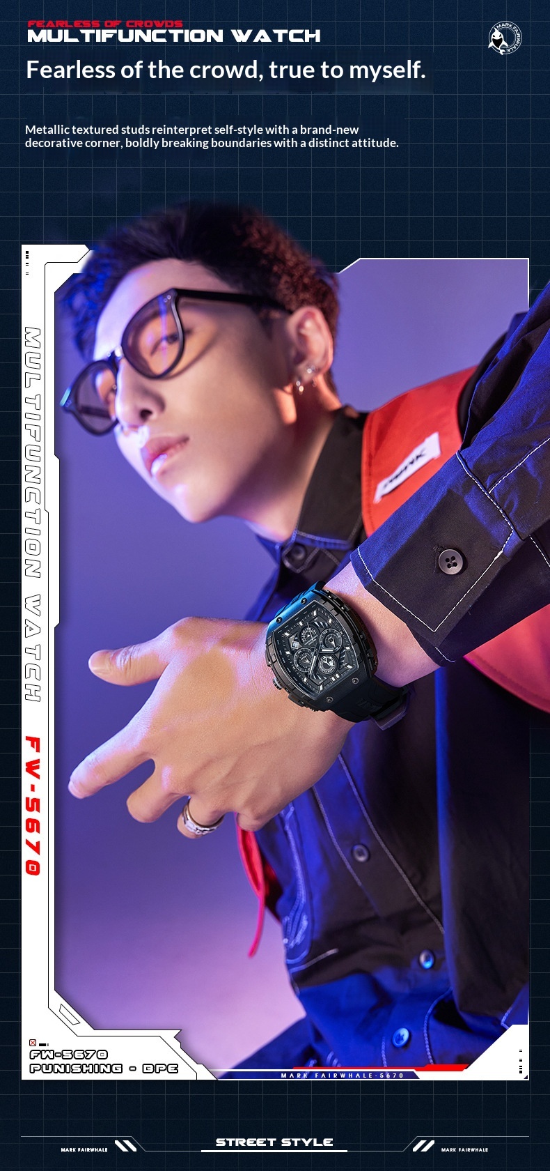 Color: FW-5670-R1 — Black case, black dial, black strap; FW-5670-R2 — Black case, red dial, black-and-red striped strap; FW-5670-R3 — White case, black dial, black strap