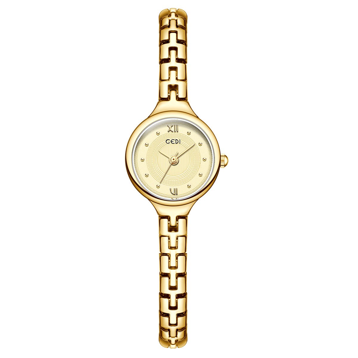 Color: Gold case, gold dial, gold strap; gold case, white dial, gold strap