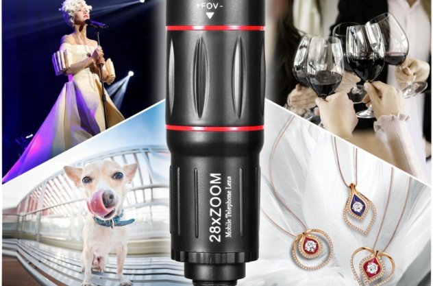 Lens type: telescope 28X + wide angle 0.6X + macro 20X + fisheye 198 degrees
