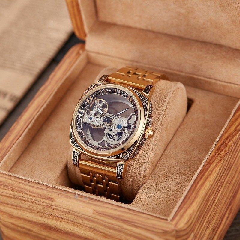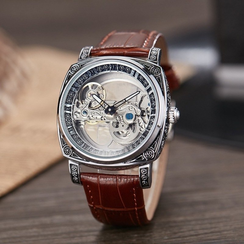 Relief-embossed Vintage Luminous Self-winding Mechanical Watch. handcrafted